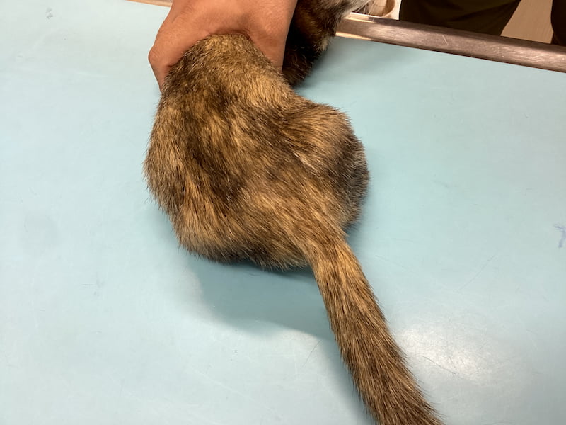 腰部から尾にかけて左右対称の脱毛が確認されました。