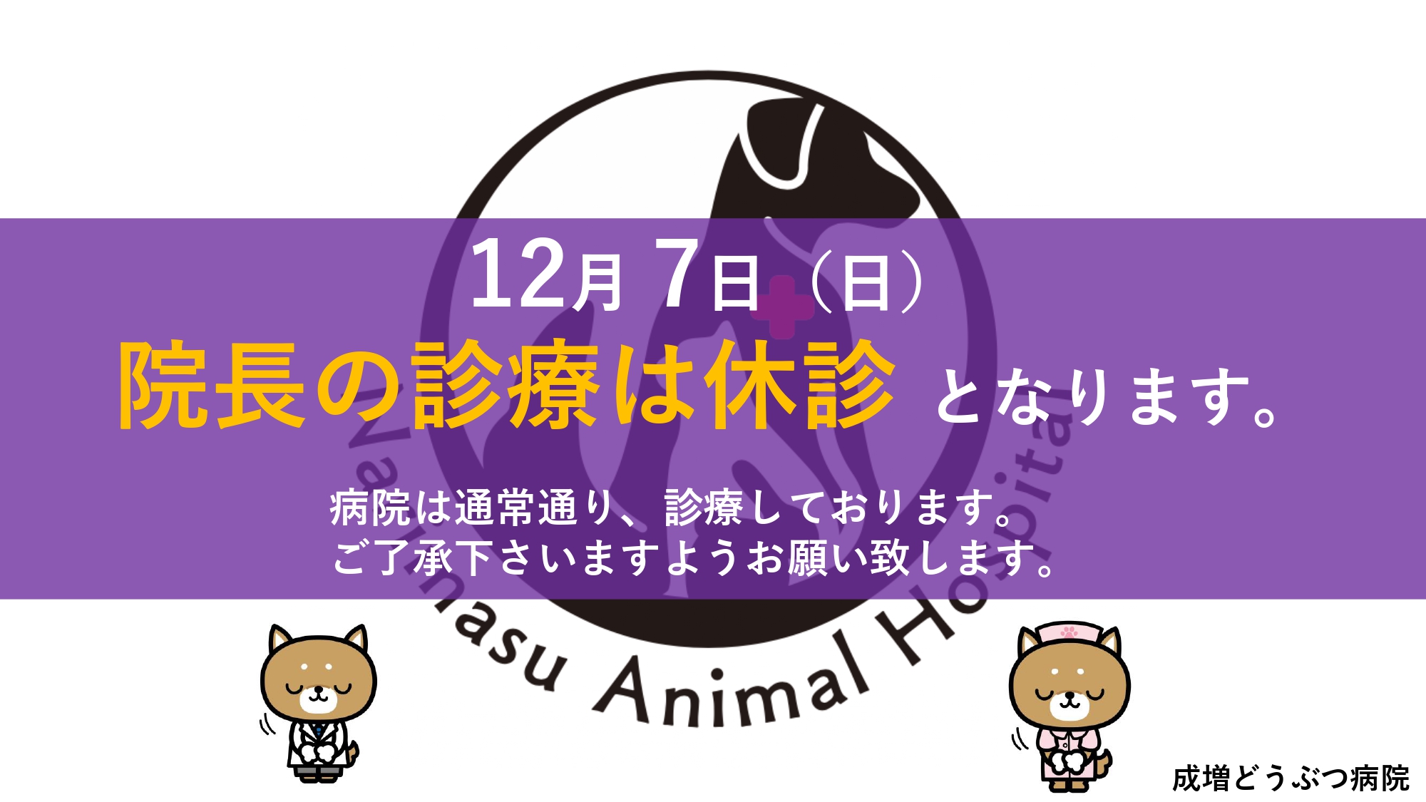 12月7日(日)は院長 渦巻の診療が休診となります。